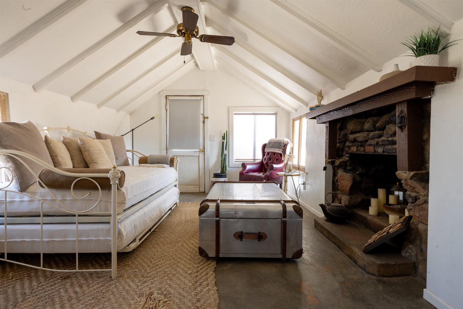 1 Bedroom • 1 Bathroom 1 Bath • Sleeps 2-4Indulge in this fully restored 1940s desert hideaway on 10 acres! with a private hot tub, plunge pool, outdoor fireplace, and indoor/outdoor seating for six. The home offers 1 bedroom + den, a full bath, and an open kitchen/dining space perfect for cooking, conversation, and connection. 360° views and picture-perfect spots to watch sunrise, sunset, and stars.